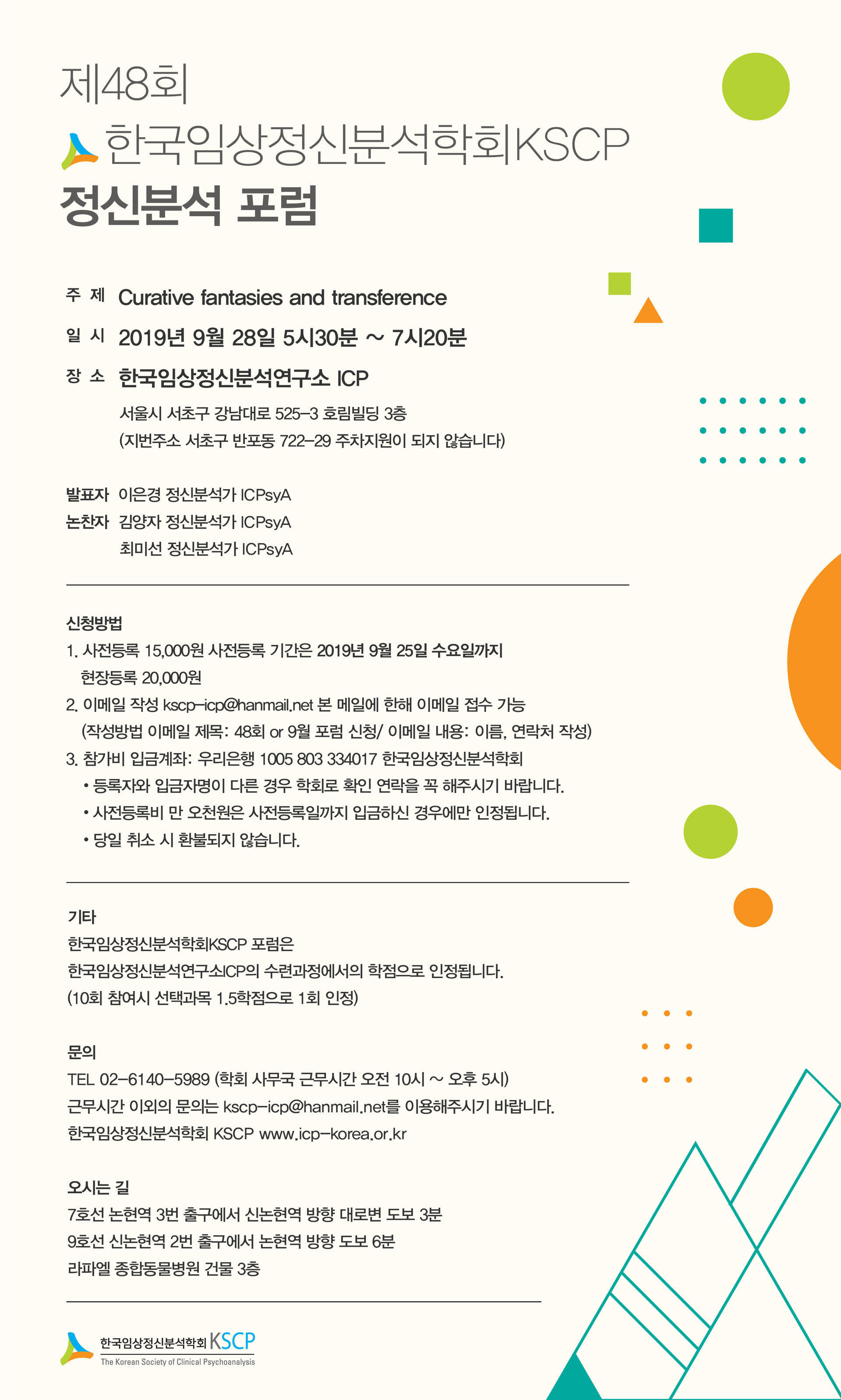 제 48회 포럼 : Curative Fantasies and Transference - 이은경 ICPsyA