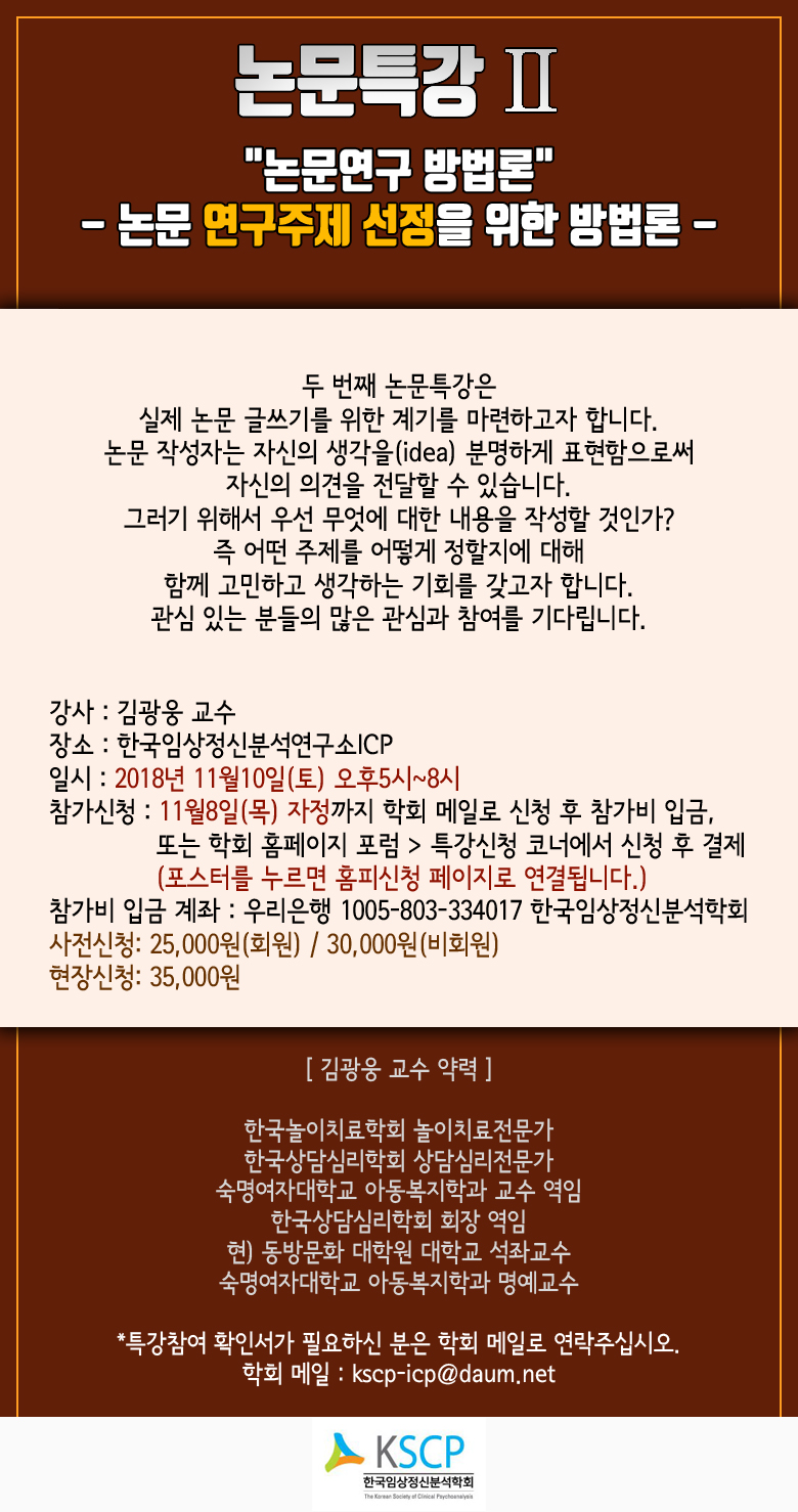 한국임상정신분석학회 대표자:최미선 주소:서울특별시 서초구 강남대로 525-3, 301호 (반포동, 호림빌딩)
