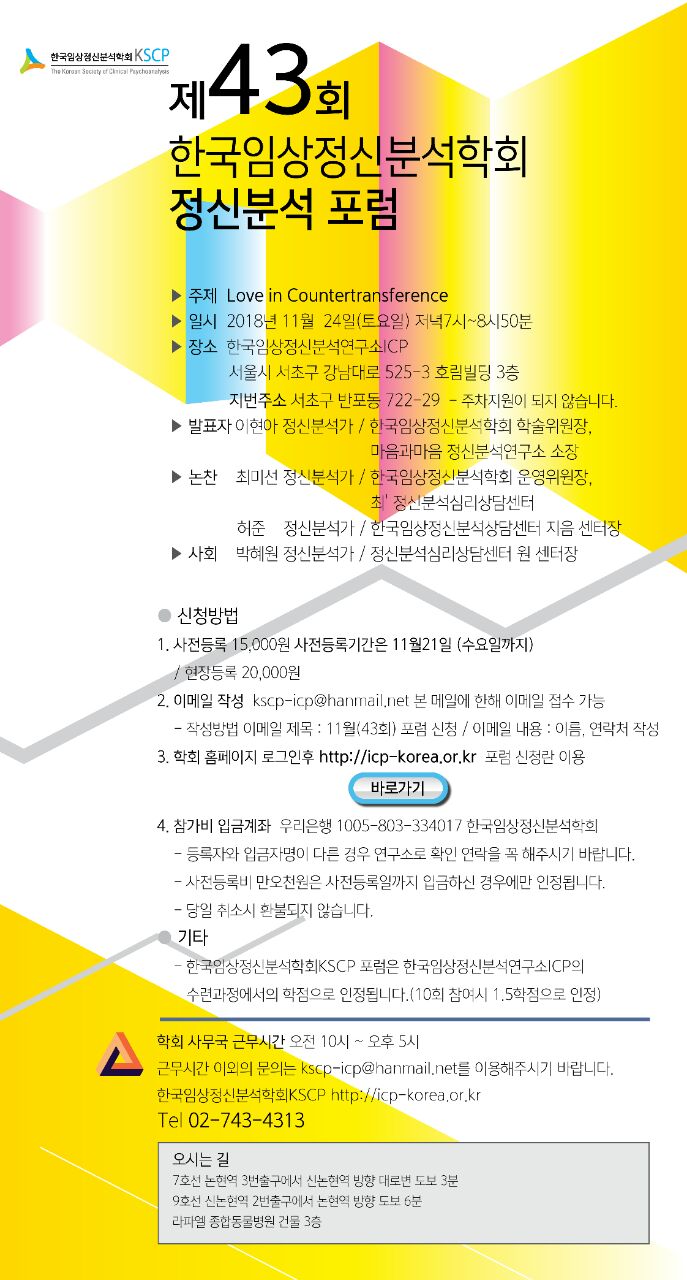 한국임상정신분석학회 대표자:최미선 주소:서울특별시 서초구 강남대로 525-3, 301호 (반포동, 호림빌딩)